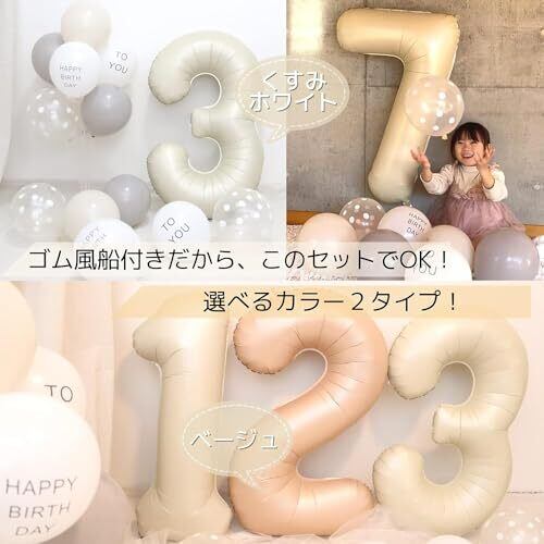 数字 バルーン ベージュ 大きい 誕生日 風船セット くすみ ナンバーバルーン アイボリー バースデー デコレーション (3, くすみホワイト)
