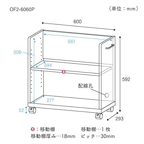 白井産業 デスクサイドに便利 サイドワゴン ラック キャスター付き デスク下収納 A4ファイルボックス縦置き対応 背面化粧 木製 白 幅60 高さ59.2 奥行29.3cm OF2-6060P オフィスコ2