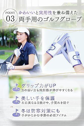 本体素材:合成皮革 大人かわいいを叶えるデザイン性 快適なゴルフを叶える充実の機能性 かわいいと実用性を兼ね揃えた両手用ゴルフグローブ カラーバリエーション豊富でプレゼントにも最適