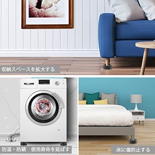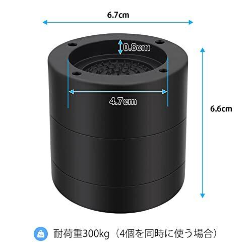 洗濯機かさ上げ台 5.8cmかさあげ 机 テーブル 脚 継ぎ足し 据付脚 洗濯機・冷蔵庫用置台 高さ調整 振動・異音軽減 滑り止め 床に傷防止 耐荷重300kg 4個入り ブラック