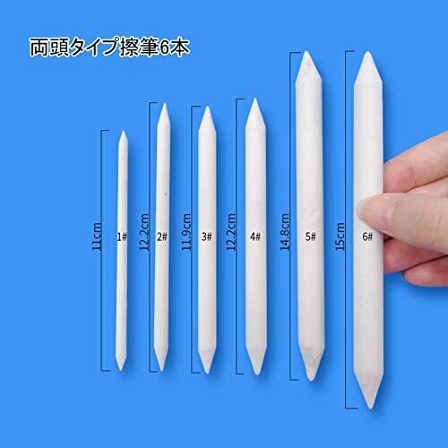 紙 擦筆 6本入り 6サイズ 紙ヤスリ 1本 サッピツ 両頭タイプ 鉛筆画 画材 木炭画 コンテ画 パステル画 デッサン イラスト 素描 美術 #1#2#3#4#5#6各1