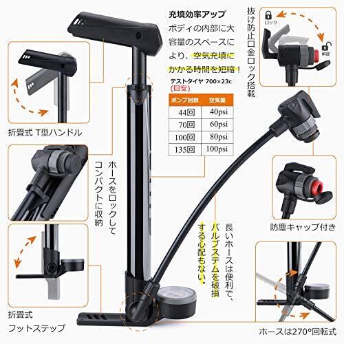 GIYO 自転車 空気入れ 携帯ポンプ 仏式 英式 米式 120psi ゲージ付き コンパクト 軽量 ミニフロアポンプ ロードバイク クロスバイク ママチャリ 各種 対応 (GM-642)