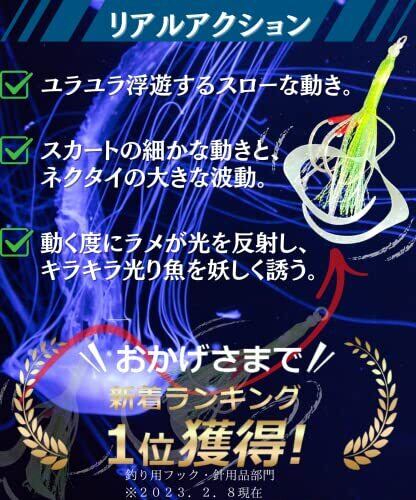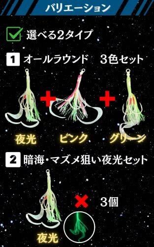 ✅抜群のフッキング力。高強度炭素鋼フックを採用。大型魚のバイトにも負けません。 ✅強い蓄光タイプです。夜釣りや、暗い内の釣りに大活躍します。タックルボックスに1セット入れておくと便利です。 ✅タコベイトのスカートは小さく自然な動き、カーリーネクタイは大きなアピール力のある動きで魚を誘います。 ✅本体素材は高品質シリコンラバーで柔軟で丈夫です。日中の釣りではキラキラ光るラメと、フックのティンセルが威力を発揮します。 ✅タイラバ、インチク、テキサスリグなど仕掛けのカスタムにも。仕掛けの自作にも最適。