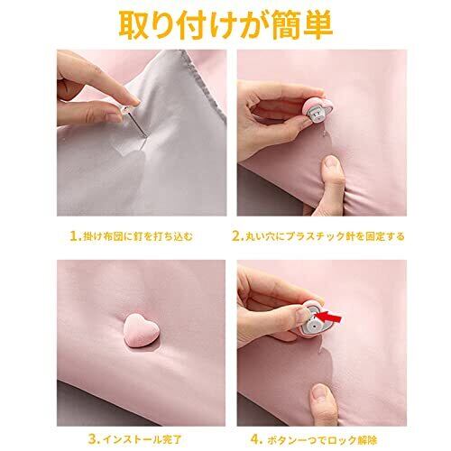 【パッケージ内容】布団固定器8個入り 【材質】固定ピンは従来のプラスチック製ではなく、高品質の金属製で、金属製のペンは耐久性に優れ、破損しにくく、長く使用することができます。 【可愛いきのこ設計】プラム型とハート型の2種類、それぞれ4色からお選びいただけます。 ピンク、グレー、ブルー、ホワイト。 お持ちのベッドリネンに合わせて選んだり、自由に組み合わせたりすることができます。 【ベッドリネンのズレを防止】肌触りがよく、かわいらしいプラム型やハート型の留め具が布団の四隅を固定し、ズレを防止します。 【幅広い用途】寝具の固定だけでなく、カーテンの固定やタオルや靴下の収納など、さまざまな用途に使用できます。