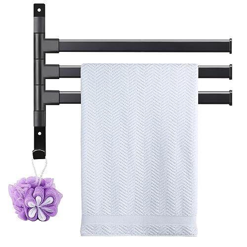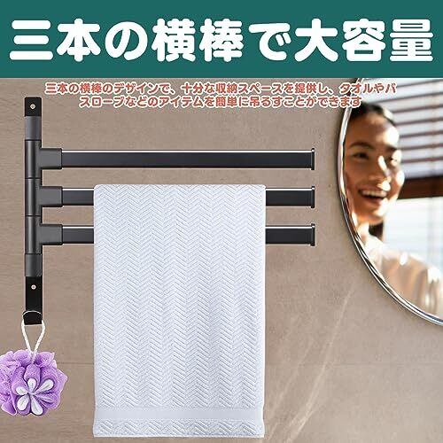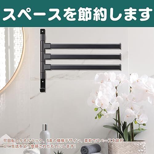 PURAIMAタオル掛け、タオルハンガーは180度自由に回転し、アルミニウム合金製のタオルバーは耐久性があり、腐食や錆びに強く、キッチン、洗面所、洗面台などで多機能に使用タオル掛けできます。(黒)