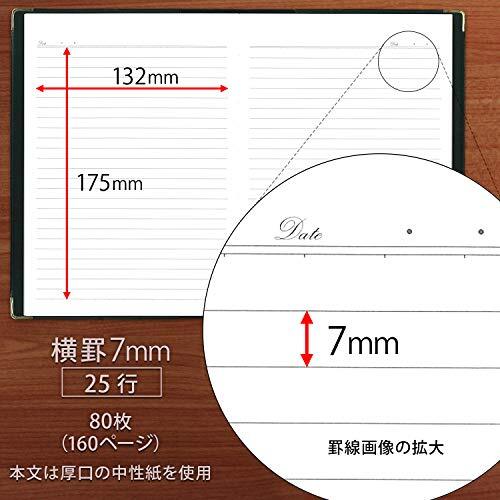 【本体サイズ】 A5(21.7cm×15.3cm) 【罫線】 7mm横罫×25行 止め罫 【製本】 糸かがり綴じ 【とじ枚数】 80枚 【注意】 アピカ1000年ペーパーについて、帯に表記された「アピカ1000年ペーパー」とは、品質が劣化しにくい中性紙の特徴をあらわしたキャッチフレーズであり、保存年数を保証するものではありません 【対応替えノート】 NY120N