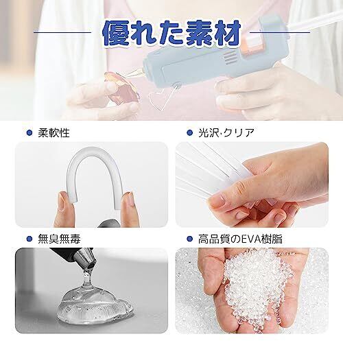 グルースティック 20本入 透明 ホットメルト 7mm*100mm グルーガン 強力粘着 高温ボンドガン ピタガン替え用 柔軟 無臭 速乾 DIY 修理用