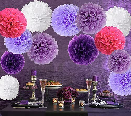 15個 ペーパーフラワー 3サイズ20cm/25cm/30cm ポンポン お花紙 5色組み合わせ 飾り付け パーティー飾り お祭り イベント デコレーション インテリア (パープル)
