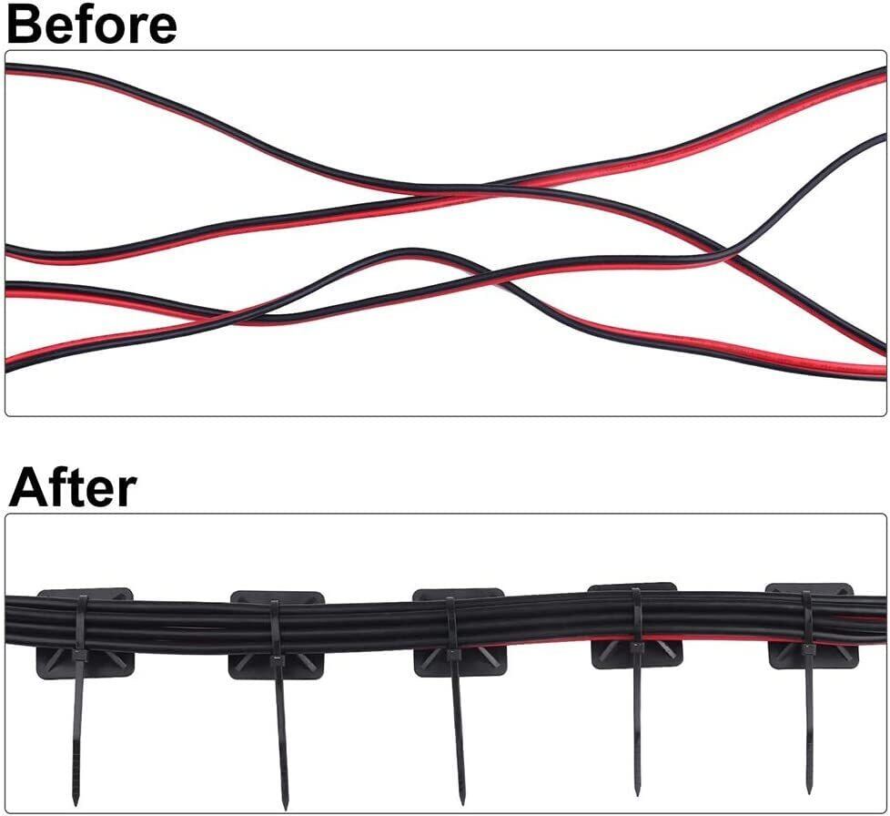 【セット】パッケージ内容:1.8 cm x 1.8 cmのマウントベース*50個 2.5 x 150 mmナイロン製パンドウイット*50本 色:ブラック 結束バンドとマウントベースを組み合わせて使用すれば、簡単にコードをきれいに整理できます。 【配線収納】異なるタイプのケーブルに適して、ベルトはお好みの長さになるよう調節でき。ヘッド下にくびれをつけることにより力を適切に分散させる事で、強度が増し、強い力で締め付け可能で、ゴチャゴチャになる電源コード、携帯電話、スマートフォンの充電コード、照明コードやPC周辺のコードなどを簡単に収納することができて。すっきり整理して家が明るくて綺麗な状態を保つのケーブルホルダーです。 【強粘着力】強力粘着両面テープで作成して、金属、プラスチック、材木、ガラスなどいろんな場所にぴったり吸着することができます。また、剥がしてもケーブルと粘着面に傷をつかないようなデザインもあります。 【取り付け簡単】両面テープを剥がして固定したいところを貼って、クリップにケーブルを収めたら、簡単に配線を収納します。また釘、マグネットなどが必要ではありません。 【様々な場合に対応】車内収納のほかにも、家庭、オフィスなどでデスクやパソコンまわりのケーブル整頓にも使え、日常に抜き差しのUSBケーブルや充電コードなどの紛失・絡まりも防止出来ます。