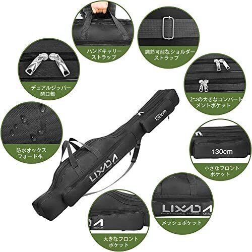 Lixada 釣り竿ケース ポータブル折りたたみ式釣り竿ケース 釣り竿リール収納バッグ 釣りギアオーガナイザー 100cm/130cm/150cm