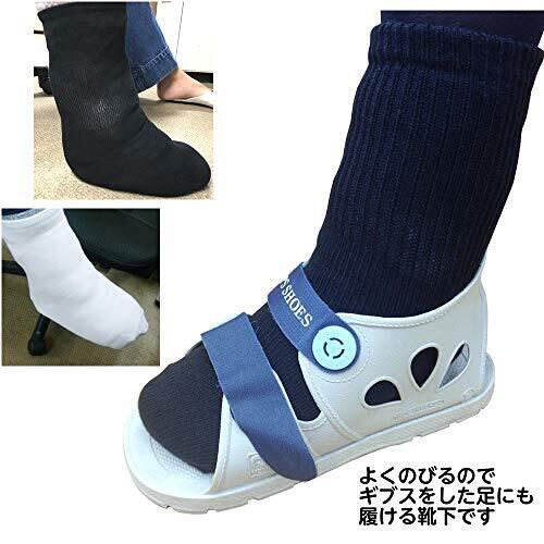 通常24cm~28cmサイズなのですが、よく伸びますのでギブスを装着したような足にも入ります。 カラー:ホワイト、黒 素材:綿85%、ナイロン、ポリウレタン。縮みにくい設計です。乾燥機80℃まで対応。コットン混で気持ちの良い肌触り。 日本製