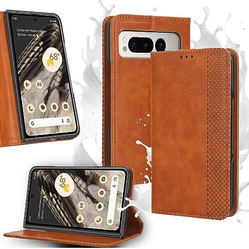Miimall Google Pixel Fold ケース 手帳型 pixel fold ケース 【スタンド機能】グーグル ピクセル Fold 用 カバー PU素材 耐衝撃 pixel fold カバー ストラップホール付き 横開き レザー マグネット式(ブラウンク)