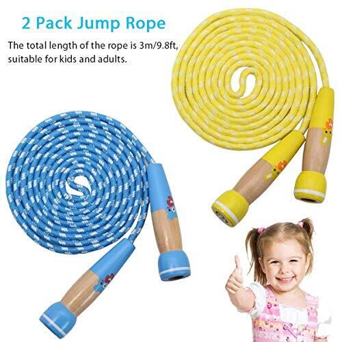 縄跳び 子供用 なわとび 幼児 エア 縄跳び ロープ調整可能 木柄 ジュニア 小学生用 ダイエット トレーニング用 運動会 体育祭 運動 - 3m イエロー 3m