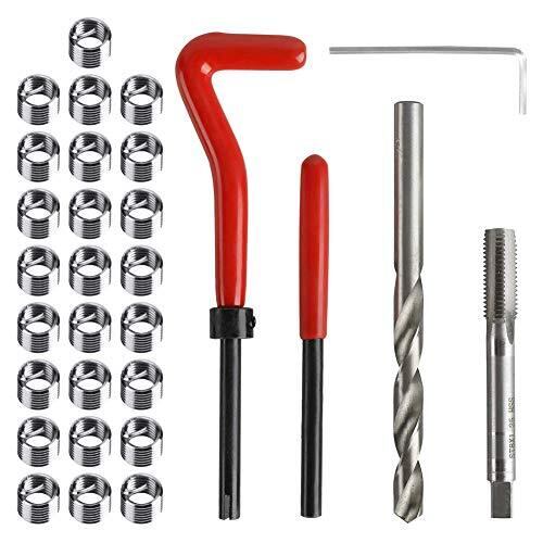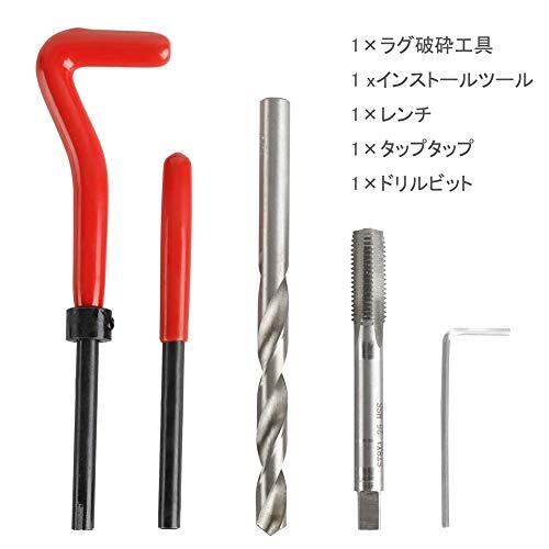サイズ : M8x1.25、鉄鋼、鋳鉄、アルミニウムの用途。 ネジ山修復セットは高品質のステンレス鋼材料製のため、強度と耐久性です。 つぶれたメネジの修正に使用するネジ山修正キットです。損傷前と同じサイズで、より強度の高いメネジを再生できます! セット内容: ドリル、タップ、挿入工具、つめ折り工具、六角レンチ、コイル25個 各種機械・飛行機・車・バイクなどの軽合金やプラスチックなど軽量素材にねじ込んで使用したり、破損したねじ山を修理し再生する時に使用します。