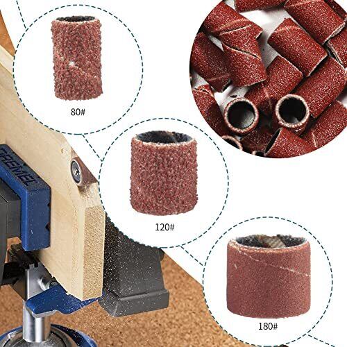 Wolfride 132個セット サンディングバンド ルーターヤスリ 電動ヤスリ 電動ルーター ドリルプレス用 ネイルオフ ネイルビット 180# 120# 80# 研削 研磨工具 木工 ロータリーツール DIY工具 12本3.17mmシャフト付