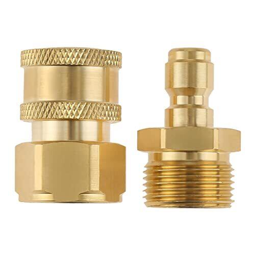 高圧洗浄機ホース用の2つの標準ブラスクイックコネクト継手のセットとなります。 高圧接続が頻繁に組み立てられたり分解されたりする際よく使用されて、スプレーガンとノズルを迅速に交換できます。作業効率が大幅に向上させます。 ボールロックのデザインは、毎回安全に接続できるように確保してくれます。 高品質の銅製で、耐食性、丈夫で使用寿命が長いです。 掃除、花の水やりなどに適しています。また、ウォーターポンプ、ホースリール、ボールバルブ、伸縮ロッド、表面クリーナー、または従来のスプレーガンに接続するためにも使用できます。