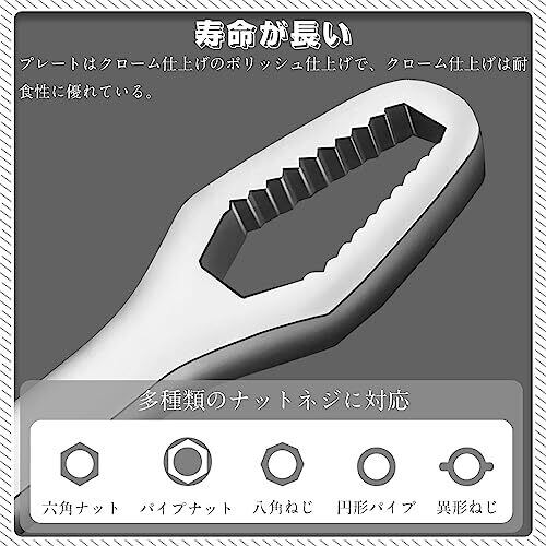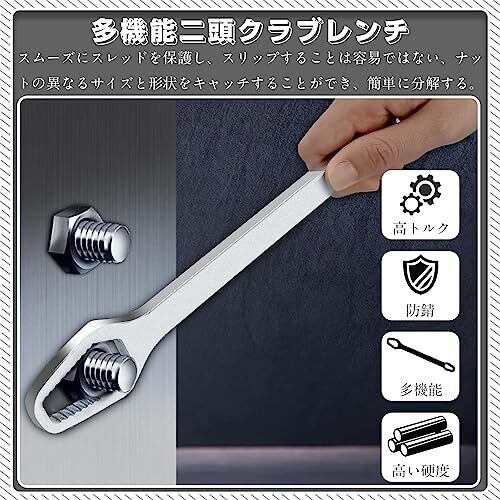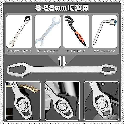 万能レンチ コンビネーションレンチ 万能スパナ 8-22mm 1個セット マジックレンチ 汎用ツール 多機能 スパナツール ボルト ナット 作業工具 締結 工具 高硬度 耐久性 自動車 バイク 修理 両用ヘッド (銀色)