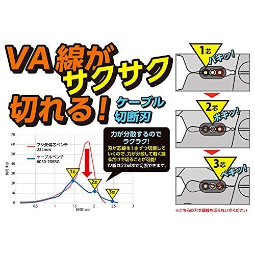 全長:183mm 重量:282g 切断能力:VA・VVF線Φ2.6mm×3芯、IV線22mm2 切断能力(硬線切断部):鉄線Φ2.0mm、ピアノ線Φ0.8mm