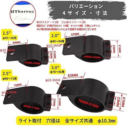 HTharros フォグランプ 取付ステー 金具 クランプ ブラケット グリルガード ルーフラック バンパー 用 アルミ ブラック 49φ~54φ 2個セット