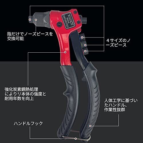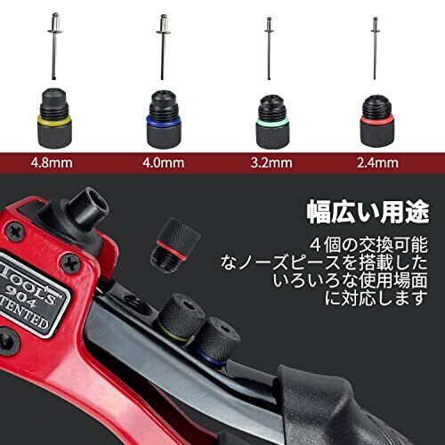 Sutekus ハンドリベッター セット ブラインドリ リベット200本付 4サイズ インサート ツールノーズピース4枚付 2.4mm 3.2mm 4.0mm 4.8mm対応 工具セット