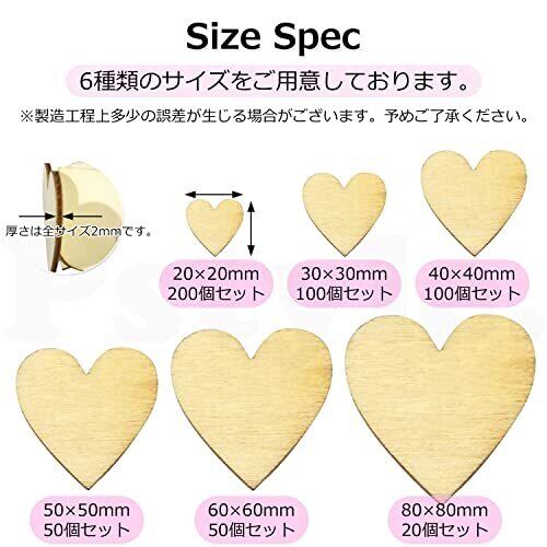 【たっぷり使える大容量セット】 ウッドチップは、各サイズそれぞれ数量を多めにした大容量セットです。結婚式や誕生日のデコレーション、ハンドメイドの材料やハートドロップスなど、様々な用途でお使いください。 【天然木材を使用した合成板】 本製品は天然のツゲの木を使用した合板です。強度が高く、木の表面が非常にきめ細かくなっておりますので、肌触りが良いという特徴を持っています。*天然木材のため、1枚1枚の色味や木目は異なります。 【加工しやすい天然木素材】 表面がなめらかなので、文字を書いたり、色を塗ったり、DIYにも使いやすい天然木です。ドリルで穴をあけたり、様々な加工にも適した素材です。 【様々なシーンで活躍できます】 結婚式には欠かせないハートの飾り付けや、メッセージカードなどにも相性がよさそうです。部屋の装飾の材料や小道具作り、ガーランド作りやウッドバーニング等にも活躍します。木製の特徴を活かし、様々なイメージを形にしましょう。 【パッケージ】 20x20mm:200個セット。 30x30mm:100個セット。 40x40mm:100個セット。 50x50mm:250個セット。 60x60mm:50個セット。 80x80mm:20個セット。