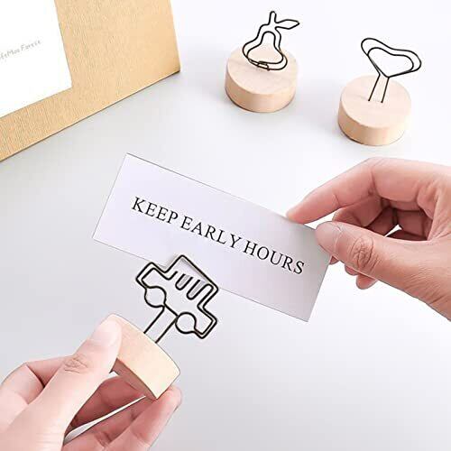 「高品質の装飾」:メモホルダーは、金属製のクリップと木製の丸い台座で構成されています。クリエイティブのテーブル飾り、形が違う金属のトレースが、生活や仕事に楽しみをもたらします。 「安定性と安全性」:フォトホルダーのベースは丸い木製のブロックなので安定性を高めることができます。また、写真ホルダーの表面は滑らかなので、写真や名刺などの損傷を心配する必要はありません。 「多機能」:Enkrioメモクリップは、メモ、写真、名刺、カード、席札などを立てるために使用します。使用すると、メモがしっかりと固定されるだけでなく、目立つようになります。 「幅広い用途」:オフィス用品として便利なペーパークリップを、デスク周りで名刺やメモなどを挟んだり、お店のポップや販促用品としても活躍します! 「パッケージ内容」:スタイルが異なるカードスタンド*18個、白いカード*100枚。このカードホルダーは、オフィス、ショップ、結婚式、カフェ、レストラン、ブティック、パーティーなどの場合に最適です