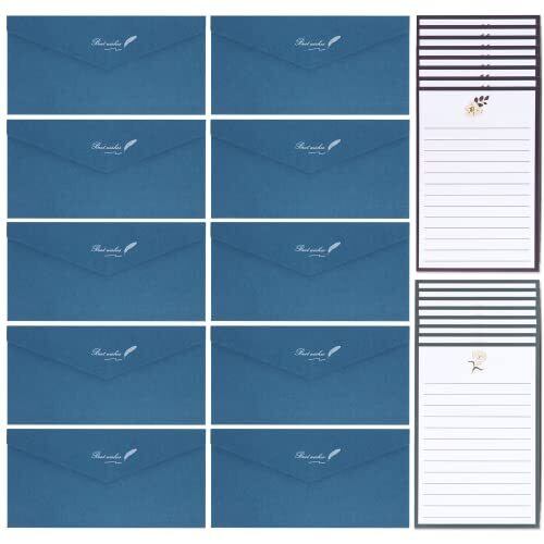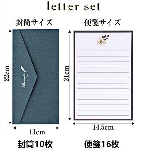 レターセット おしゃれ 大人 シンプル 封筒10枚 手紙16枚 便箋セット お洒落 高級大量 セット 招待状 結婚式 お祝い 挨拶状 (ネイビー Best wish)