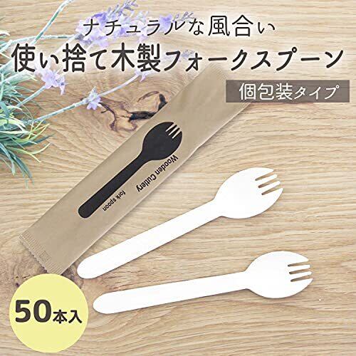 中村 使い捨てフォークスプーン 木製 個包装 未晒紙 ナチュラル 約160mm 50本入