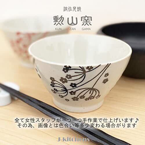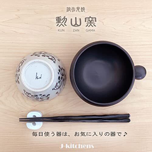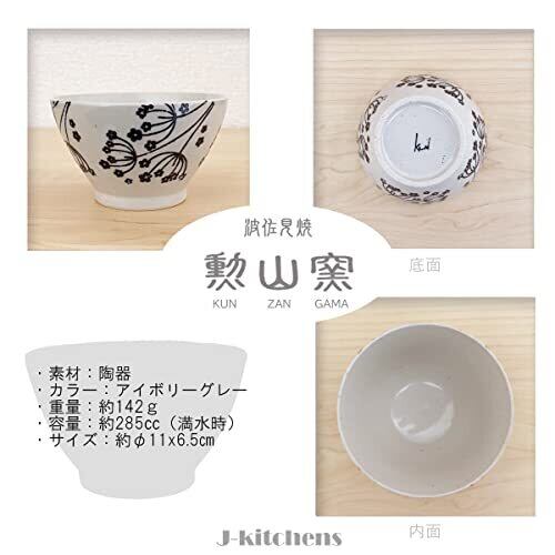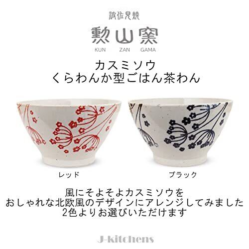 J-kitchens 勲山窯 くらわんか 茶碗 11cm 波佐見焼 日本製 カスミソウ ブラック
