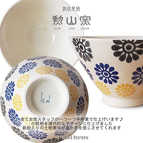 J-kitchens 勲山窯 ペア 茶碗 12.6cm & 11.5cm 波佐見焼 日本製 花 小紋