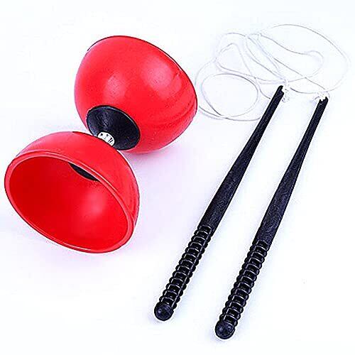 [TradeWind] 中国ゴマ ディアボロ ジャグリング 大道芸 サーカス ヨーヨー 紐 スティック付き ストリート パフォーマンス (レッド 赤)