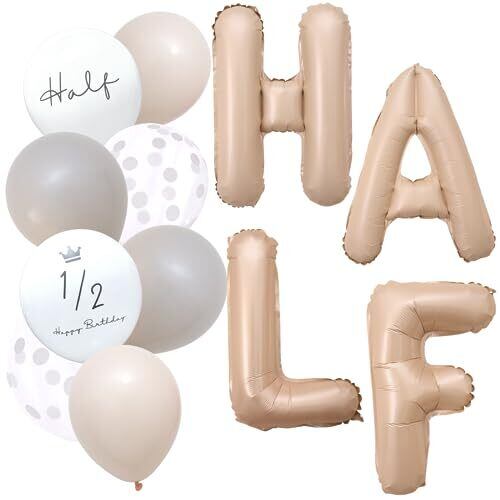 数字 バルーン ベージュ 大きい 誕生日 風船セット くすみ ナンバーバルーン アイボリー バースデー デコレーション (ベージュ(風船付), HALF)