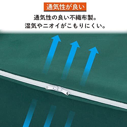 【商品仕様】:サイズ/約幅96×奥行70×高さ37.5cm、カラー/グリーン、内容/1枚、収納目安/シングルサイズの掛け布団・敷き布団各1枚、材質/ポリプロピレン 【通気性の良い不織布製】:通気性の良い不織布で、予備や来客用の布団一式をホコリから守り大切に保管。 【大きく開くファスナー】:ダブルファスナーで3辺が開くので、布団の出し入れがスムーズ。 【シンプルで使いやすい】:無地のワンカラーでシンプルなので、押入れ内にもクローゼット内にも馴染む。 【サイズ違いとの併用も】:同シリーズの衣類用、毛布用、布団一式用と合わせて使用するのもオススメ。
