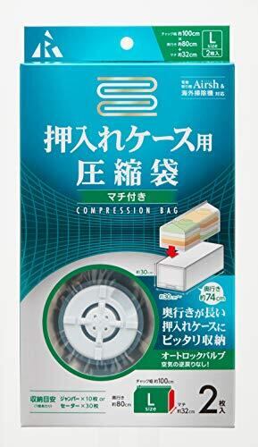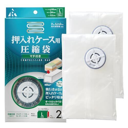アール(R) 圧縮袋押入れケース用マチ付 圧縮袋 透明無地 100×80×32(cm) バルブ式 繰り返し使用可能 2枚 RE-009