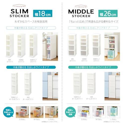 組立品 耐荷重:天板=約2kg 棚板(上段・中段 約2kg 棚板(下段)約5kg ・1段あたり 材質:天板・棚板・支柱・ジョイント・コロ=ポリプロピレン 棚板内寸(上段・中段)約W100×D350×H175㎜ 下段内寸 約W100×D350×H310㎜ パッケージ重量: 1.48 kg シンプル収納シリーズ「リセ」。色とりどりの毎日を、より心地よく、快適に。