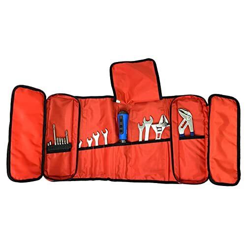 SK11(エスケー11) ロールバッグDX M ツールバッグ 工具 収納 ファスナーポケット付き ブラック/レッド | RoseRiot