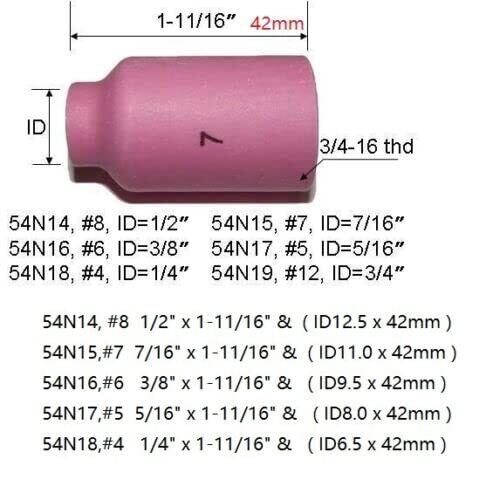 RIVERWELD TIGガスレンズセラミックカップ54N15( #7、D11.0 * 42mm )TIG溶接トーチWP 17 18 26シリーズリンカーンミラーESABウェルドクラフトCKエバーラスト10pk