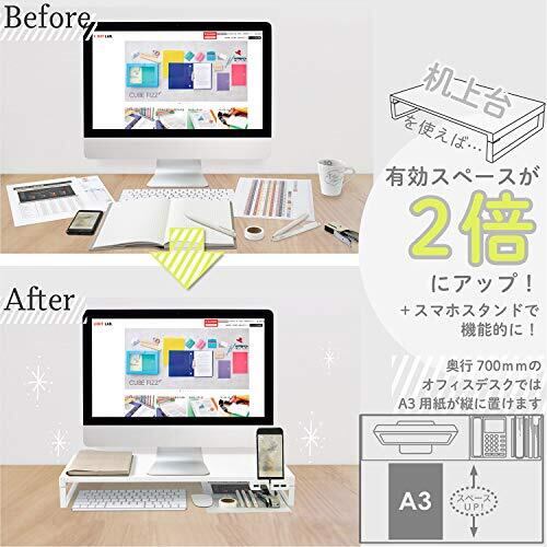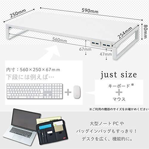 リヒトラブ パソコン台 モニター台 USB 机上台 白 幅59×奥行25.4×高さ8cm USB3.0ハブ付 耐荷重15kg A7334-0
