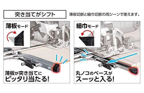 ワンタッチで薄板切断用と細巾切断用に切り替えできます。 薄板モードは9㎜ボードを重ねた状態で切断するのに最適な突き当ての高さで、2枚目に干渉しません。 細巾モードは電気丸鋸のベースが隙間に入り込むので細巾切断ができます。 ステンレス製ですので錆びにくくなっています。 ブレ防止金具で左右のブレと上方への曲がりを防ぎます。