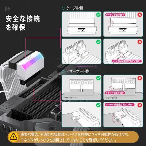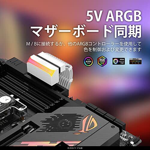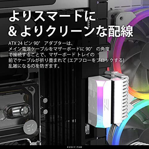 EZDIY-FAB ATX 24ピン90度電源コネクタ 5V3ピンARGBメスからオス - 白