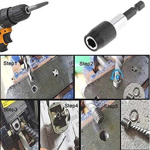 サイズ:3mm-4mm(0.12 "-0.16")の#1、3mm-5mm(0.12 "-2")の#2、3mm-6mm(0.12 "-0.24")の#3、5mm-8mm(0.2 "-0.31 ")の#4、6mm-11mm(0.24" -0.43 ")の#5。 HSS高速度鋼を採用したので、全体熱処理を経って、硬度が高く、耐摩耗性が高く、更に耐久性があります。 このスクリューエクストラクタは、電動ドリルに取り付けて使用できます。 つぶれたネジやボルト類を簡単に取り出すことができます。まず穴を開けてから、なめたボルトを逆回転させます。二歩だけで簡単にネジを取り外すことができます。 ネジ取りセットは折れたボルト、潰れたネジを抜き、ビス頭を抜く専用工具で、堅い木材や木製の机にネジや壊れたスクリューナットを取り出すのに適している。潰れた木ネジと小ネジ、および破損した平ネジ、六角ネジ、または塗装ネジ、破損スクリューに使用できるネジ取りセットです。