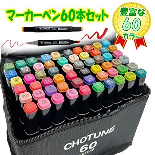 マーカーペン 60色 アルコールマーカー 太細両端 画材 キャリングケース付き イラストマーカー 水彩ペン 2種類のペン先 (60)