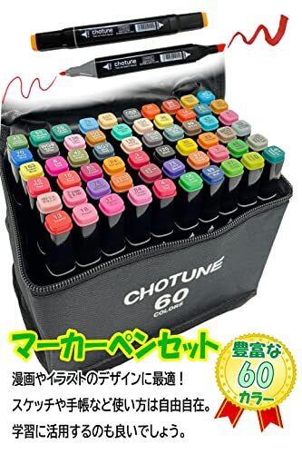 【2種類のペン先】太めと細め(硬筆)、両方とも使えるマーキングペン。目立つように塗る、細かく書き出すなど、自分のスタイルによって、使い方は自由自在。お絵描きや漫画制作に活用できます! 60色セットのマーカーペンセットを1つ用意すれば、学校での絵描きも、職場の資料作りも、趣味である大人の塗り絵、スケッチ、手帳の記入にも使える、いろんな場面に活躍してくれそうなマーカーペンセットです。暗記マーカーとしても、ハイライトとアンダーラインを正確に書けます! 【きれいな線を引きやすいつくり】ペン先の向きがしっかりと固定しやすく、均一な幅の線を引けるペンセット。乾く時間が短く、汚れになりにくい! 【商品内容一覧】ペン 60色セット 収納バック 【詳細】良く使う基本色の他に、ピンク、イエロー、ブルーなど鮮やかなカラーが60色で展開します。 【キャリングケース付き、保管便利】美しい黒の専用キャリングケースが付属されています。持ち運びや保管しやすいです。ご注意:キャップ内部と外部の異なる空気圧はインク漏れの原因となります。使う時は、丁寧にキャップを取り外しください