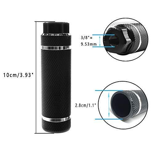 スタイリッシュな彫刻、強化された粗面。 グリップが良く、足を踏んだときの摩擦が大きく、滑りにくいです。 100mm * 28mm(3.93in * 1.1in)、これは3/8インチシャフトx 26Tに適用されます。まず、自転車のシャフトサイズを確認してください。 このピンは14 mmには適していません。 高強度アルミ合金製。 軽量。 自転車の前輪と後輪の両方の車軸に適しています。 取り付け方法:自転車のシャフトの長さが短すぎる。 シャフトのネジを外し、ペグをシャフトに置く必要があるため、より安全です。