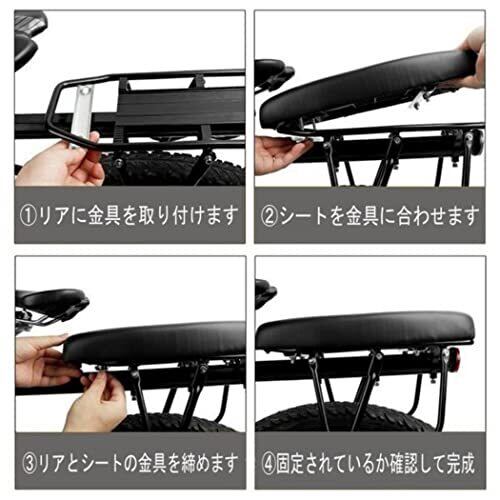 自転車 荷台 クッション シート 後付け リア キャリア PUレザー ボルト固定式 無地 ブラック