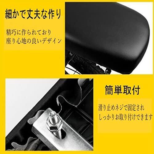 自転車用 荷台クッション 厚みのあるサドルで、荷物を衝撃から守ります。 多様な車種に適しているため、自転車の種類を問わず利用可能です。 防水性のある素材(PUレザー)で作られており、雨天や濡れた路面でも安心して使用できます。 ネジ固定式なので、しっかりと固定できます。 クッションが自転車にしっかり固定されていることを確認してから、自転車に乗ってください。(※この商品は二人乗りをする為のものではありません)