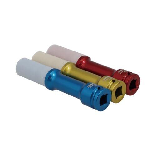 差込角("SQ):1/2 全長(mm):85 ソケット深さ(mm):27 ホイールへのダメージを軽減する樹脂カラー付き。 ブローモールドケース入り。ホイルナット用インパクトソケット:17・19・21mm(23381・23382・23383)
