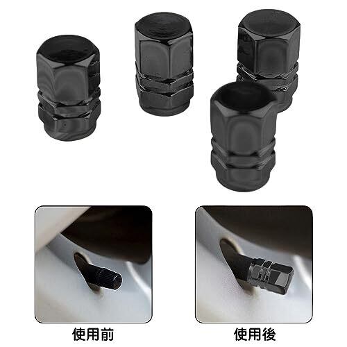 タイヤエアバルブキャップ 4個セット タイヤ ホイール エア バルブ キャップ カバー 車 自動車 バイク オートバイ ドレスアップパーツ 防水 腐食防止 (ブラック)