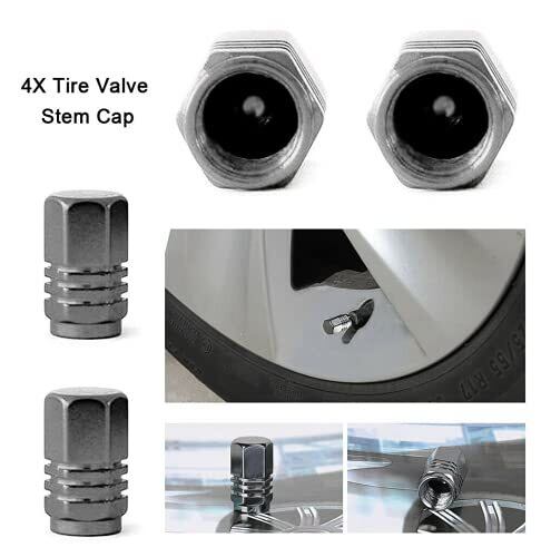 タイヤ用 エアーバルブキャップ 4本入り 車 , バイク のホイールドレスアップにピッタリなアクセサリーです。 材質:軽量と耐腐食性に優れたアルミ合金製 サイズ:全長約18mm , 直径約:10mm , ネジ カラー:ガンメタ 車体のボディーカラーやホイールのカラーに合わせて, 足回りをカスタム。 六角柱の形状と3本の切り込みラインがオシャレでかっこいいです!