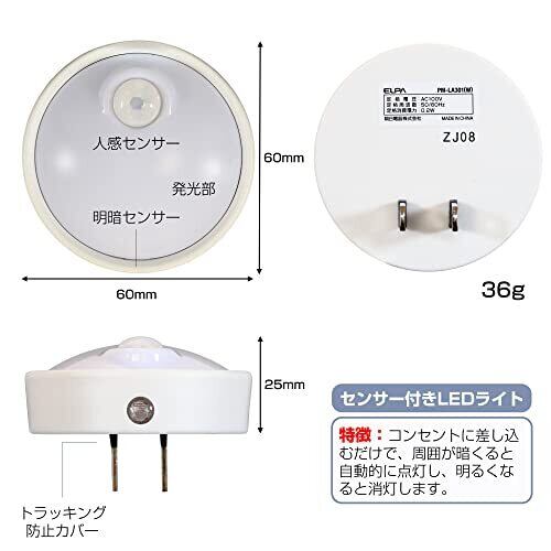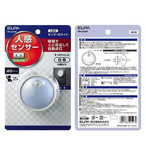 エルパ (ELPA) LEDセンサー付ライト (丸形/ホワイト/サービスコンセント付) 人感センサー PM-LA301(W)